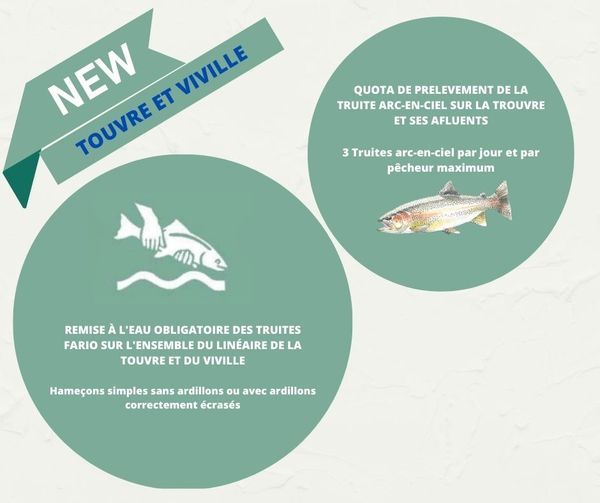 Le quota de prélèvement de truite arc-en-ciel est réduit à 3 par jour et par pêcheur, sur l'ensemble de la Touvre et du Viville.