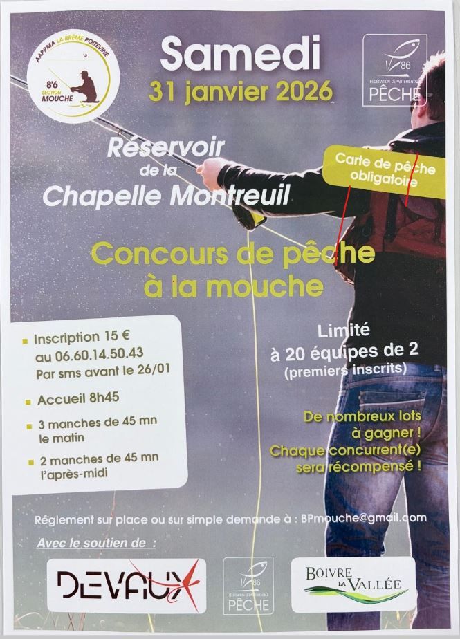 - inscription par équipe de 2 pêcheurs, 15€ par personne au 06 60 14 50 43