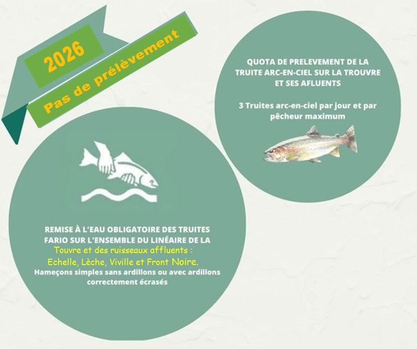 Le quota de prélèvement de truite arc-en-ciel est réduit à 3 par jour et par pêcheur, sur l'ensemble de la Touvre et du Viville.